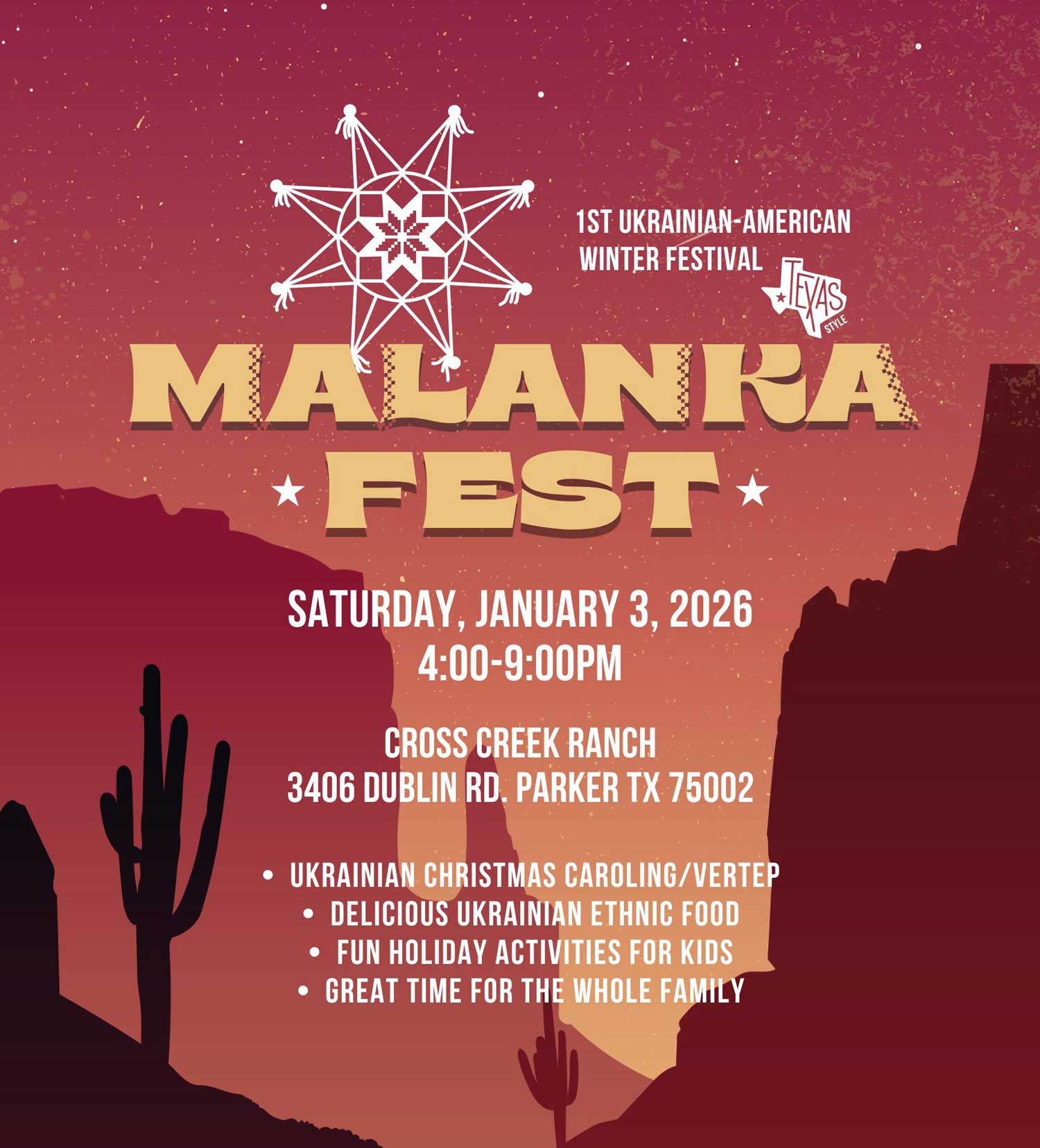 Malanka-Fest у Техасі продовжує цю прекрасну традицію, об’єднуючи українські та американські родини у спільному святкуванні з музикою, танцями й смачною їжею. Метою фестивалю є також гуманітарна допомога — збір коштів для українців, які втратили кінцівки через війну й потребують протезів. Це вечір радості, доброти й єдності культур.